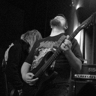 The first of the two headliners Stagnant took the stage to much fanfare. By now the room was filling up quite nicely. I love when Stagant comes to Omaha. I've had the pleasure of photographing Casey (guitar/vocals) and Blake (drums) in Stagnant and before that their band Elend. They're both super talented and bring the heavy. Casey was shredding the drop-tuned sludge and later in the set did some wicked tapping solos all while screaming his head off and turning beat red. Meanwhile Blake was dishing out blast beasts and pounding tribal drum patterns that made the walls shake. If you want those really nasty riffs that will give you the "something stinks in here" face, then Stagnant is right up your alley. The band played a good 45 minutes and left the crowd cheering. I saw quite a few Stagnant shirts walking around throughout the show. If folks didn't know who they were before they definitely know now! Make sure to give Stagnant a follow so you can catch them next time they come to town!